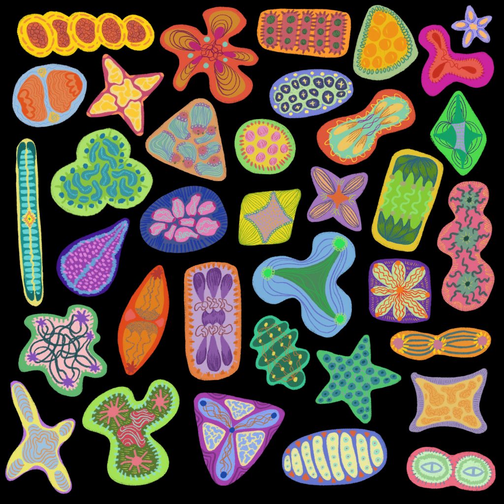 This self-directed piece is one of my pieces I consider “inaccurate science” or “inaccurate biology”. In this piece, I took inspiration from diatoms(single cell micro algae) and other single cell organisms.